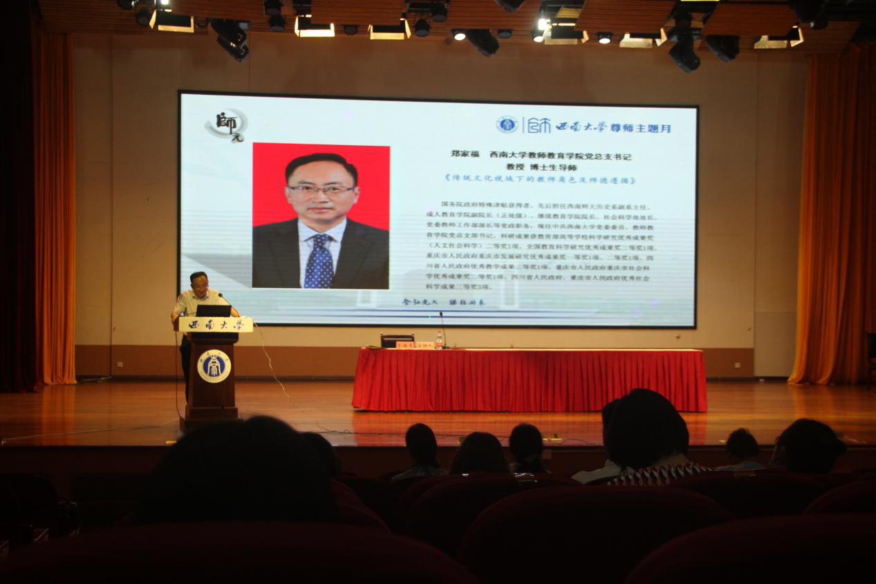 本次论坛以立德树人铸师魂,爱国荣校有担当为主题,2位专家进行了专题报告,6位专家进行专题发言。原重庆市教委副巡视员李源田以《高尚师德是教师发展的强劲动力》为主题进行报告。郑家福书记从历史文化的角度探讨师德师风问题,强调从传统文化厘清师德的源流。董小玉以《做一个有灵魂的老师》作专题发言,董老师倡导各位党员应勇担历史使命,做新时代好老师的引路人;站稳思想脚跟,做立德树人的践行者;厚植人文情怀,做仁而爱人的教育者。76net必赢官网经济管理学院王志章教授,76net必赢官网附属中学校长、党委副书记欧健,76net必赢官网附属小学美术教师于宏,76net必赢官网教师教育学院杨晓钰等教师也相继做了精彩发言。