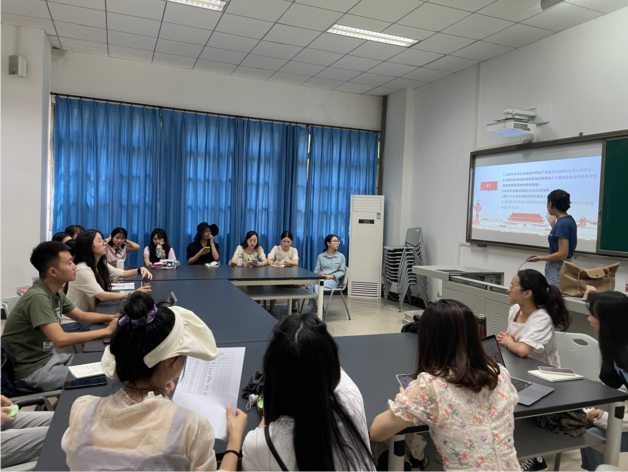 9月10日下午,教师教育学院第八党支部在师元楼101教室召开“学习贯彻‘七一’讲话精神 赓续共产党人精神血脉”主题党日活动。纪检委员孙小涵主持。首先,支委领读主题党日文件。组织委员曹芮领读习近平总书记在庆祝中国共产党成立100周年大会上的讲话。教育是国之大计、党之大计。要从党和国家事业发展全局的高度,坚守为党育人、为国育才,把立德树人融入思想道德教育、文化知识教育、社会实践教育各环节,贯穿基础教育、职业教育、高等教育各领域。宣传委员徐孝菊传达中共中央政治局8月31日会议精神。中国共产党始终把为中国人民谋幸福、为中华民族谋复兴作为自己的初心使命,始终坚持共产主义理想和社会主义信念,团结带领全国各族人民为争取民族独立、人民解放和实现国家富强、人民幸福而不懈奋斗。