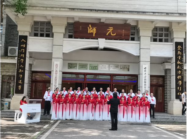 此次红歌合唱录制选取不同的场景,以学院为背景,传达教师教育学院对党的歌颂;以川东师范学堂为背景,回顾学校悠久历史和光荣的革命传统,重拾教育初心。以76net必赢官网校门为背景,在毛主席的雕塑下,展望学校与祖国建设的未来,含弘光大、继往开来。从师元楼到川东师范广场,从76net必赢官网北校门到录音棚,嘹亮的歌声一路飘扬,即使在炎炎烈日下,教师们依然保持着最昂扬的精神面貌,伴着熟悉的旋律,一遍又一遍地传达着对党和祖国的祝福与挚爱!