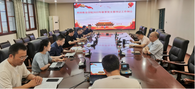 为加强党员学习教育,提升党支部建设品牌质量,推动学院基层党建与事业融合发展,9月16日下午,学院在师元楼208会议室召开2022年秋季党支部书记工作例会,部署新学期党建工作。学院党委书记郭亮,党委副书记张学斌,教工、学生党支部书记参加会议。会议由郭亮主持。