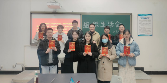 之后,在邓磊书记的主持之下为相关党员同志过政治生日,由唐长玉同志向相关党员颁发生日贺卡,在全部生日贺卡颁发完毕时,集体重温党的誓词并进行合影。