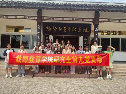 其次,由支部书记钟晓燕同志开展特色学习活动:讲党课《技术赋能,实现教育、科技、人才三位一体融合发展》。之后,成娅、罗钧洋、吕汶梅同志过政治生日,重温入党誓词。此外开展支部特色活动,党员同志及入党积极分子们坐车前往合川陶行知先生纪念馆,依次参观了八个展出部分,分别是青少年时期、提倡教育改造时期、乡村教育时期、普及教育时期、国难教育到战时教育时期、全面教育时期、民主教育时期。通过对陶行知先生的生平事迹及其教育思想如“生活即教育,社会即学校,教学做合一”,“人生天地间,各自有禀赋,为一大事来,做一大事去”等内容的了解,党员同志们进一步加深了对教育的认识,为今后走上三尺讲台奠定了良好的思想基础。