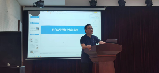 最后,陈恩伦院长强调,研究生导师要持续加强师德师风建设,要以身作则自觉贯彻党的教育方针,切实肩负起“立德树人、教书育人”的神圣使命,对学生要严格要求与关爱相结合,把师德师风建设贯穿到教书育人的各个环节。