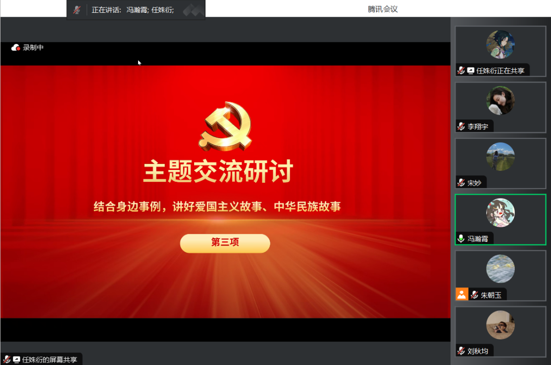 各位党员同志们积极分享了一些感人的爱国主义故事和中华民族故事。冯瀚霄同志分享了著名结构生物学家、美国国家科学院外籍院士颜宁宣布将从普林斯顿大学辞职,参与创建深圳医学科学院的故事。中国高质量发展越来越离不开创新助力,颜宁归来,是一场适逢其时的双向奔赴。常永吉同志分享了“七一勋章”获得者卓嘎和妹妹央宗的故事,半个多世纪来,父女三人在中国与印度交界的地方的大片的无人区以放牧为生,像格桑花一样扎根在雪域边陲,守护着祖国数千平方公里的国土。