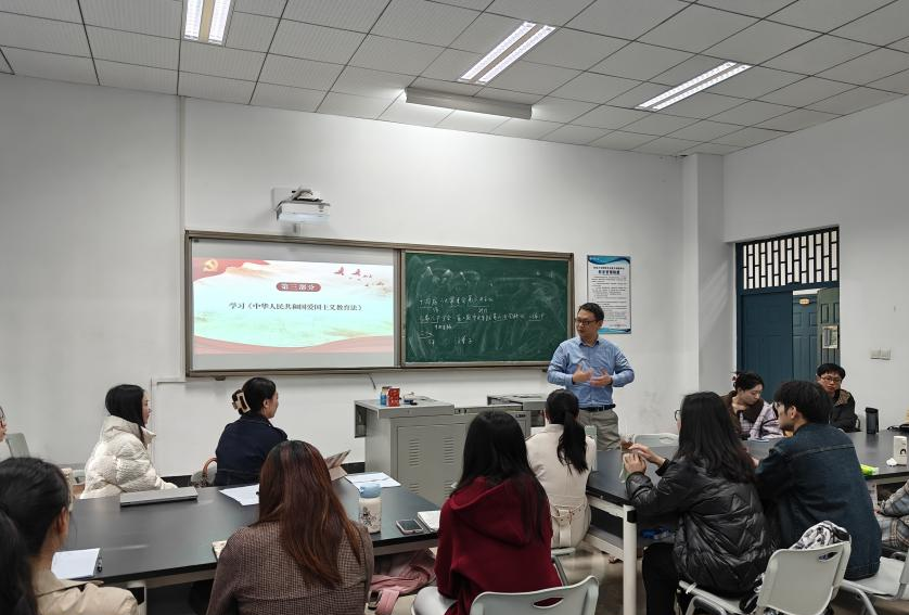 党员谭璇、龚婷、段漫以及何千梅带领大家学习《中华人民共和国爱国主义教育法》。为了加强新时代爱国主义教育,传承和弘扬爱国主义精神,凝聚全面建设社会主义现代化国家、全面推进中华民族伟大复兴的磅礴力量,根据宪法,制定本法。包括总则、职责任务、实施措、支持保障、附则。中国是世界上历史最悠久的国家之一,中国各族人民共同创造了光辉灿烂的文化、共同缔造了统一的多民族国家。国家在全体人民中开展爱国主义教育,培育和增进对中华民族和伟大祖国的情感,传承民族精神、增强国家观念,壮大和团结一切爱国力量,使爱国主义成为全体人民的坚定信念、精神力量和自觉行动。因此,我们要响应国家号召,培养爱国主义精神。