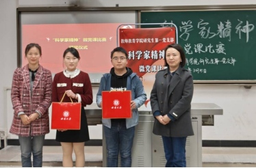 为深入学习贯彻党的二十大精神,引导青年学生进一步坚定理想信念,更加全面深刻领会习近平新时代中国特色社会主义思想的精神实质和丰富内涵,积极响应党中央关于进一步弘扬科学家精神的号召,不断提升党员教育的针对性和实效性,2024年3月15日下午2点半,研究生第一党支部开展了“科学家精神”微党课比赛,以此激发学生党员进一步厚植爱国主义情怀,铭记科学家精神、坚定理想信念。本次比赛由生命科学学院党委副书记、纪委书记石莹华同志,学院组织员、研究生第二党支部书记顾静同志,教师教育学院研究生第一党支部书记邓磊同志和教师第二党支部组织委员李富强同志担任评委。