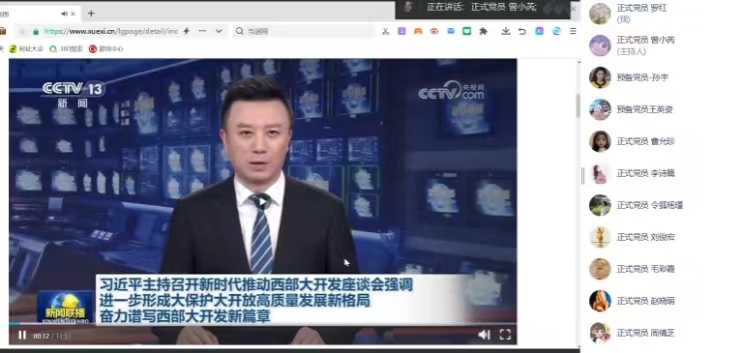 曾小芮带领支部成员集中学习了习近平总书记对新时代青年寄语、习近平总书记主持召开新时代推动西部大开发座谈会的重要讲话精神、习近平总书记在重庆考察时的重要讲话精神和学习市委书记袁家军来校调研并主持召开青年代表座谈会的讲话精神。其中,曾小芮带领支部成员通过视频播放的形式,重点了解了习近平总书记主持召开新时代推动西部大开发座谈会的重要讲话精神。