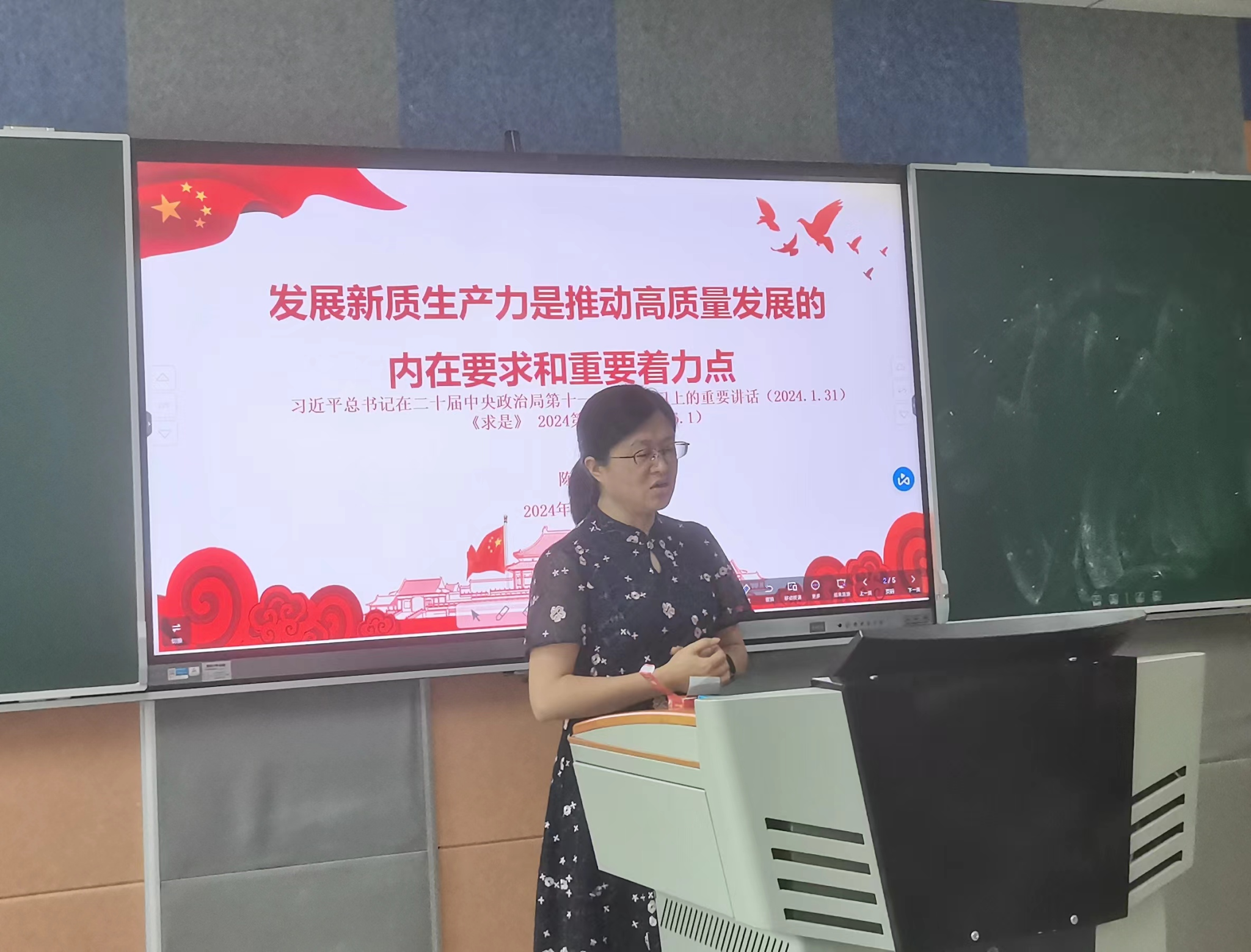 支部书记陈亮讲授微党课《发展新质生产力是推动高质量发展的内在要求和重要着力点》,介绍了“新质生产力”提出的背景,从历史逻辑、理论逻辑、实践逻辑具体分析了其内涵、价值、影响因素等,重点分析了教育与新质生产力之间的关系。