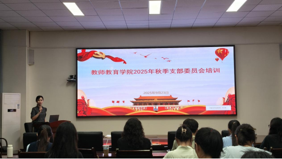 2025年9月23日下午,为进一步加强党支部组织建设,提升支部委员履职能力,学院党委委员顾静老师在师元楼105教室组织开展了2025年秋季支部委员会培训。本次培训围绕支部委员会职能分工、党务平台操作、党员发展流程等内容展开,旨在进一步规范支部工作、提升组织效能,学院组织员顾静主持会议。