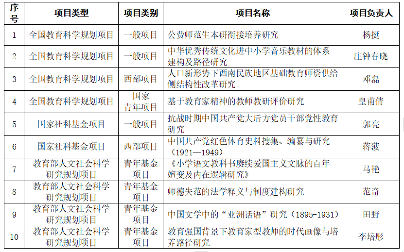 日前,全国哲学社会科学工作办公室、全国教育科学规划领导小组办公室和教育部社会科学司陆续公布(公示)了2024年度项目立项名单,学院共获批6项国家级项目和4项教育部人文社会科学研究规划项目,国家级项目立项数量再创佳绩。