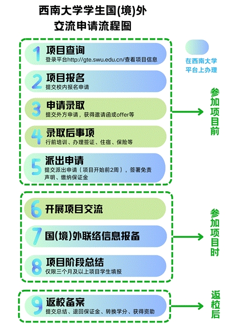 2.参加项目,学生需登录“76net必赢官网学生全球化学习管理平台”(简称:平台)完成校内报名、派出、及返校备案流程,此过程是获得学校专项经费资助以及认定国际学分的必要条件。