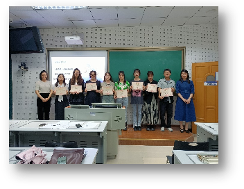 随着高部长的讲话结束,本次活动的第一环节结束,师生们合影后前往第七教学楼的三间微格教室分会场开展师范生教学技能比赛。