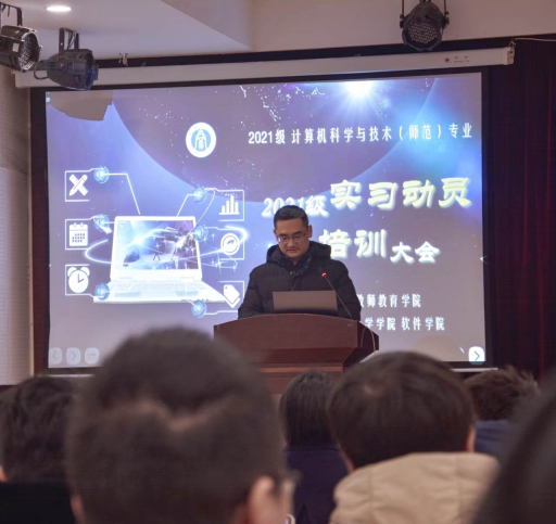 为统筹推进2021届师范生实习工作,提升师范生教育实习质量,2024年1月2日下午,计算机与信息科学学院 软件学院2021级师范生专业实习动员暨培训大会在教师教育学院师元讲堂召开。教师教育学院副院长张正严、卓越教学中心主任胡航、巴蜀中学信息技术学科中心主任赵霞芬、卓越教学中心2023年秋季访问学者黄维康、2021级辅导员夏浩然、全体教育实习指导老师及2021级全体师范生参加会议。会议由胡航老师主持。