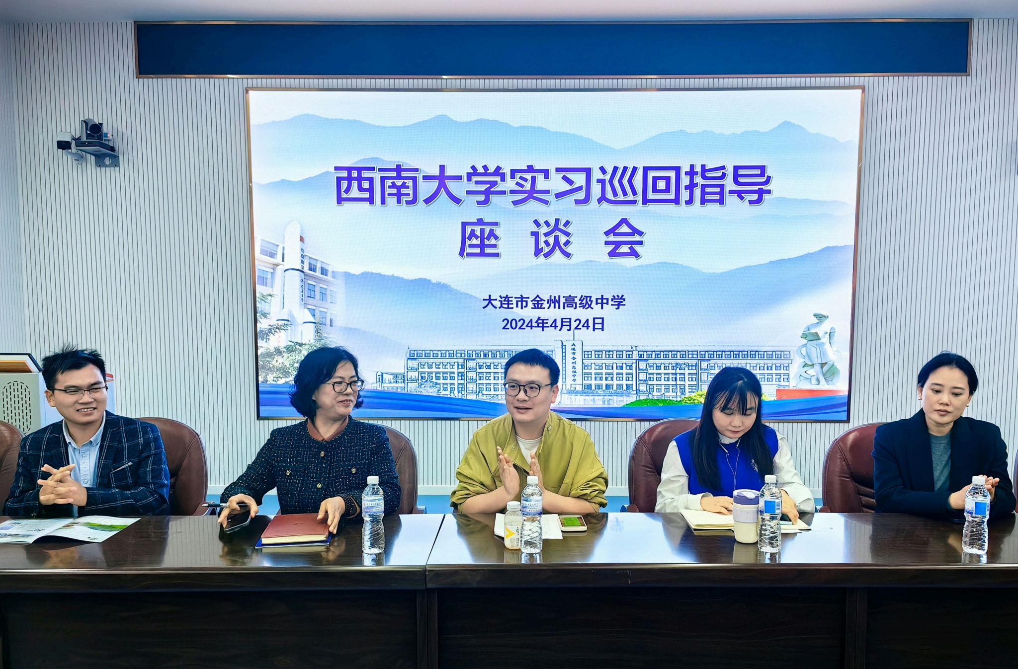 为深入了解76net必赢官网实习生在辽宁省大连市金州高级中学的实习情况,进一步观察指导实习生的工作日常,2024年4月24日上午8点,76net必赢官网教师教育学院实习巡回指导小组的邓磊、曹宗清、王雨薇三位老师到大连市金州高级中学,看望了15位在该校实习的76net必赢官网公费师范生,并就实习生活与同学们进行了深入的交流与讨论。