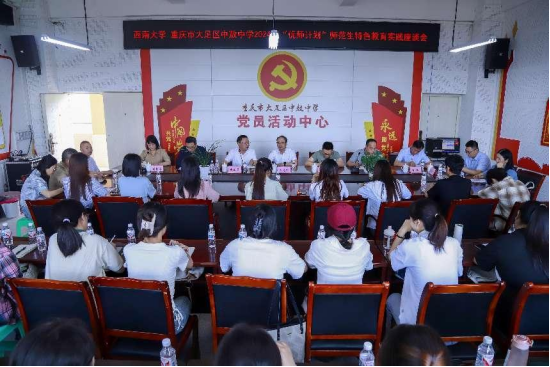 近日,副校长周光明带队赴大足区中敖中学考察调研,看望正在该校开展特设教育实践的学校首批“优师计划”师范生。大足区教育工委委员、区教委有关负责人,中敖中学全体班子成员及在该校参加特设教育实践的29位“优师计划”师范生出席相关活动。