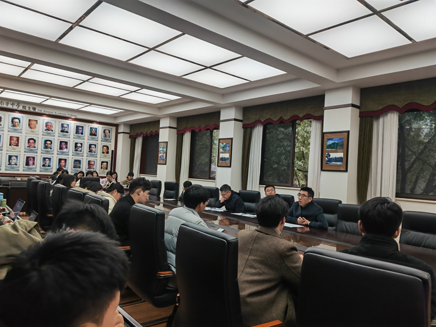 会议的最后,吕书记先和实习教师们分享了他在新加坡南洋理工大学的访学经历,并由此启示实习生们要终身学习。接着,书记引导大家观察会议室里的院士墙和书法作品,指出南开中学发扬科学家精神,各位实习教师要多花时间了解南开的故事和历史,才能更好地和学生交流。吕书记还鼓励实习生们多学习,多参与体验南开的各种活动,同时也要多反思,可以采取写日志的方式记录自己所思所想。