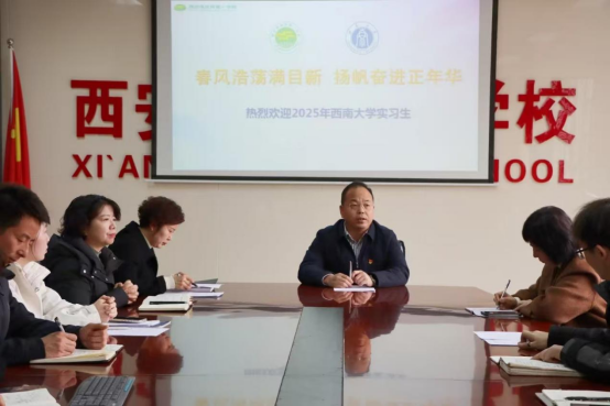 遇见是最美好的开始,一切都恰逢其时。在开学之际,西安经开第一学校中学部迎来了19位朝气蓬勃的76net必赢官网实习生,2月19日下午,学校召开了76net必赢官网实习生实习工作安排会。