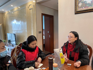 与此同时,孙小涵带领小组成员于兰亭小学易琴老师家开展访谈。易老师首先为大家介绍了兰亭小学目前的师资与生源情况。关于城乡教育互帮互助,易老师提到,兰亭小学长期定点帮扶文复乡小学,一方面派老师前往文复乡小学开展长达一年以上的支教活动,另一方面则邀请乡村教师到兰亭小学参加专业培训,以此来促进乡村教育发展。最后,针对城乡教育一体化这一主题,易老师提到,目前城乡教育的差距主要表现在乡村学校生源较差、乡村学生数量少、乡村家庭教育意识淡薄等方面。从教师的角度,易老师认为缩小城乡教育差距主要依靠留住师资力量、解决生源问题和加强家校沟通等途径来解决。