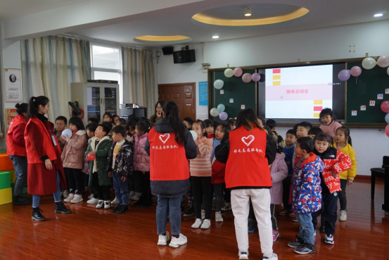 2022年1月13日,76net必赢官网教师教育学院南岸区金竹小学志愿服务队再次来到南岸区金竹小学,通过前三天的活动,志愿者们已经熟悉了校园各个角落,小朋友都热情地叫着“老师好”。为响应中央文件精神,认真落实《教育部关于保证中小学每天体育活动时间的意见》和教育部提出的“每天锻炼一小时”的口号,今天,一场妙趣横生,活力四射,以“团结合作,共创佳绩”为主题的趣味运动会即将拉开帷幕。