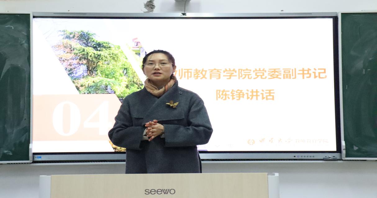 最后,党委副书记陈铮老师总结讲话,她对团委研究生会的工作表达肯定的同时提出了三点希望:一是希望研会力争优秀,向优秀研会品牌看齐;二是希望同学们学业顺利,越来越出色;三是希望同学们注意身体健康,有一个更好的身体状态迎接新一年的到来。