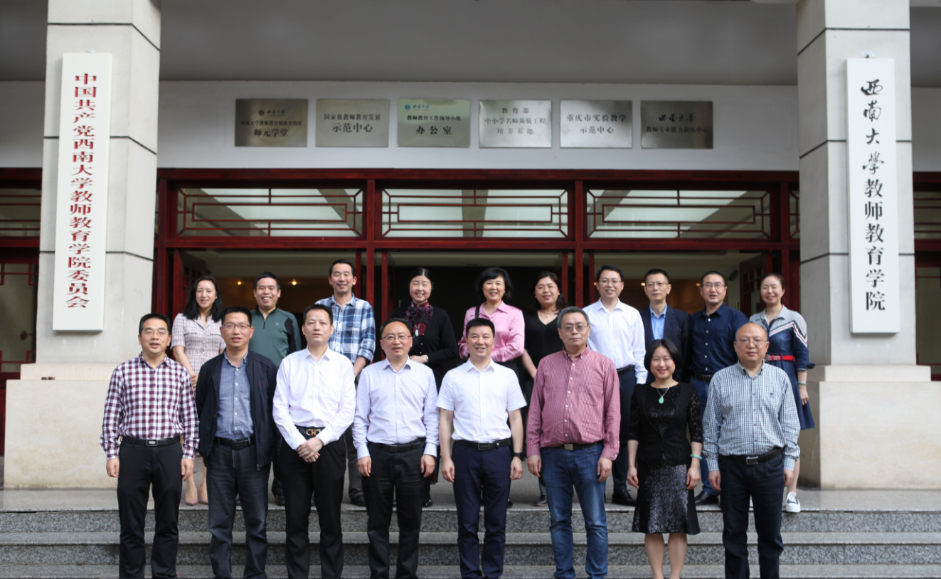4月30日下午,76net必赢官网与沙坪坝区委教育工委教育合作交流会在学院顺利举行。沙坪坝区委教育工委书记、区教委主任向斌、区教委副主任刘婷婷、沙坪坝区教师进修学院党委书记、院长龚雄飞、76net必赢官网教师教育学院党委书记郑家福、院长陈恩伦出席会议。会议由郑家福主持。