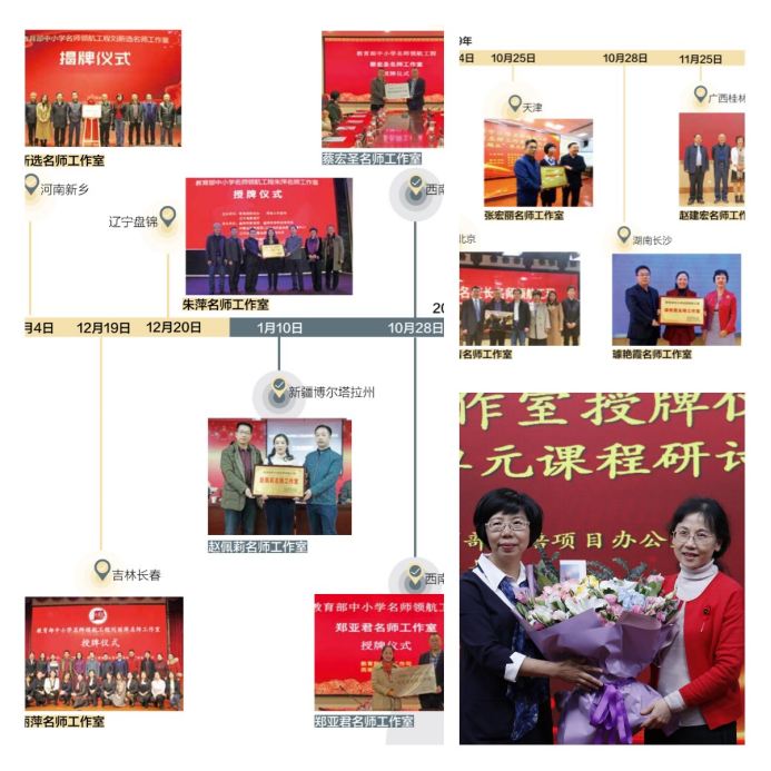 逐梦之旅渐入佳境,培养成果瓜熟蒂落。学员们孵化出了“生命语文”、“以美育心”、“以文化人”、“塑导教育”、 “三品教育”、“主题丛单元教学”、 “数学史+教育”、“为不教而教”等教育教学思想和主张,取得了丰硕的系列研修成果:10位学员,获国家级教学奖5人次,省级教学奖4人次,7人入选国家级人才库,完成国家级课题3项,省市级课题16项,出版专著4部,教材1部,编著17部,在《人民教育》《中国教育报》等期刊报纸发表论文60余篇。