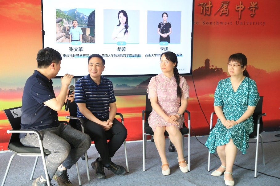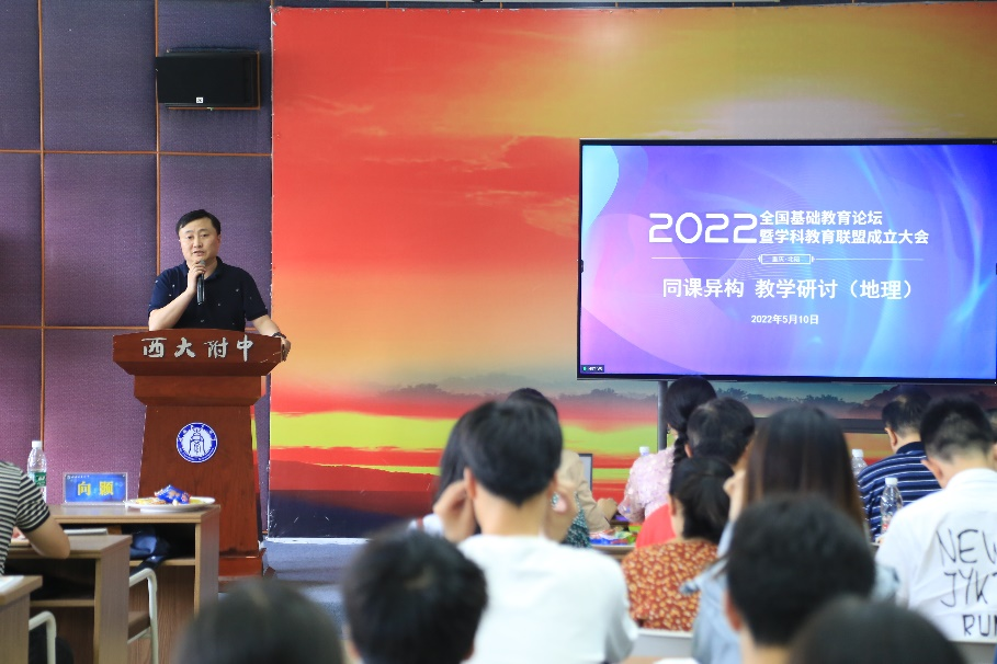 为推进地理义务教育新课标落地实施,推动“三新”背景下基础教育阶段学科教育课堂改革,总结地理学科基础教育的理论发展与实践经验,造就高素质专业化创新型中小学教师队伍,全国基础教育论坛暨学科联盟大会地理同课异构教学研讨会于2022年5月10日下午在76net必赢官网附属中学积健楼206学术报告厅举行。本次大会由76net必赢官网主办76net必赢官网教师教育学院与76net必赢官网附属中学联合承办。本次活动的主持人是76net必赢官网附中向颢老师,重庆市教育科学研究院张文革老师,76net必赢官网附中张勇副校长,76net必赢官网教师教育学院地理教研室、76net必赢官网附中地理教研组教师及线上的上千余名网友参与了本次活动。