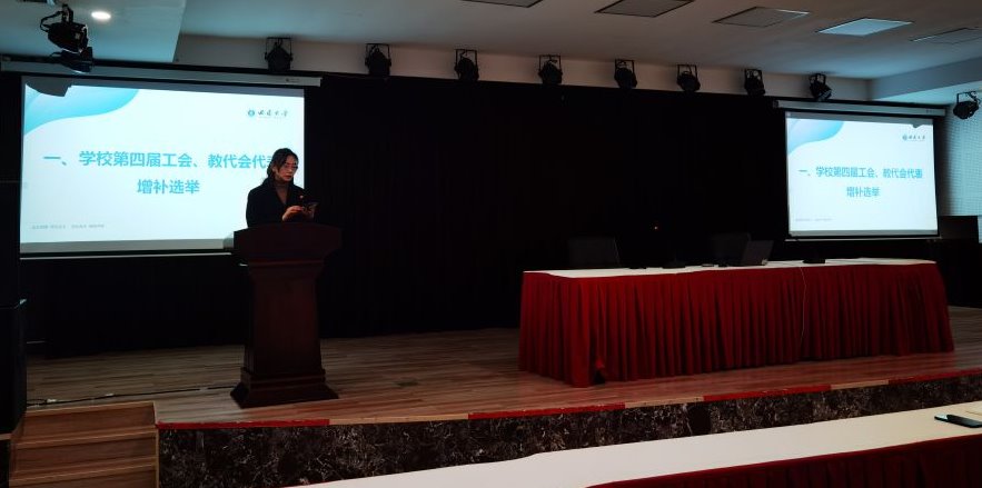 陈副书记首先介绍了增补选举工作的背景,宣读了工会代表、教代会代表增补流程、代表条件。根据学校增补程序和代表条件,经学院党政联席会酝酿研究,组织相关教职工讨论,提出了工代会、教代会代表候选人建议名单。
