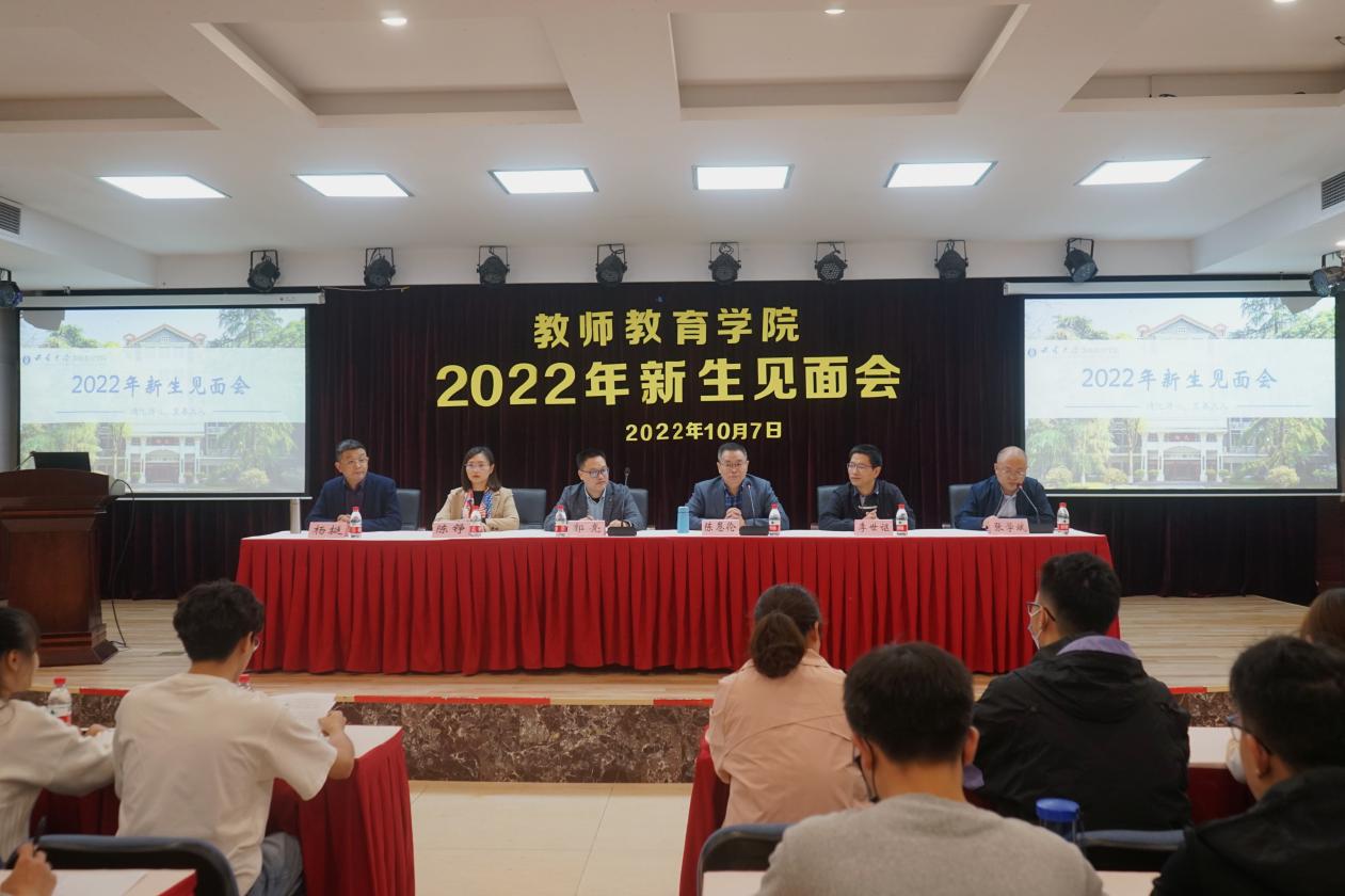 奋斗青春砥砺行,不负韶华勇担当。10月7日下午,学院采取“现场+云端”的方式在师院讲堂隆重举行2022级新生见面会。学院领导班子成员郭亮、陈恩伦、张学斌、陈铮、李世讴、杨挺,教师代表、辅导员、高年级学生代表,2022级全体新生参加见面会。会议由张学斌主持。