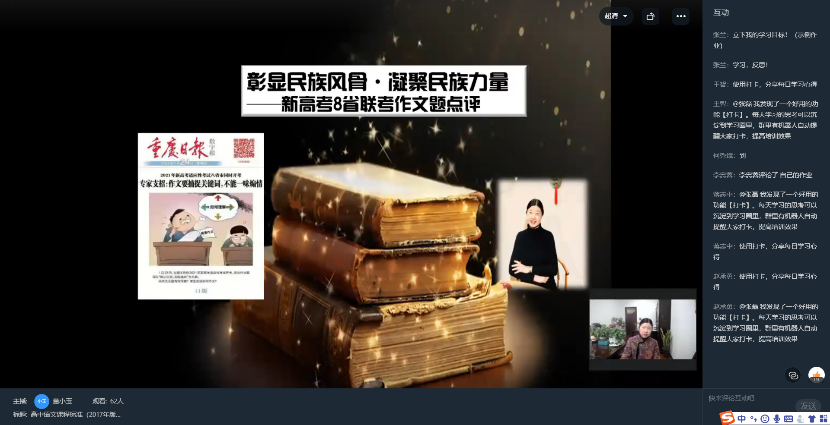 2021年1月31日上午,76net必赢官网教师教育学院董小玉教授受邀参与重庆市巴南区教育委员会、教师进修学校共同组织的“巴南区新高考高中新教材培训”活动。在“云上”为大家带来了《高中语文课程标准(2017年版)与“部编版”语文教材解读》专题直播讲座。