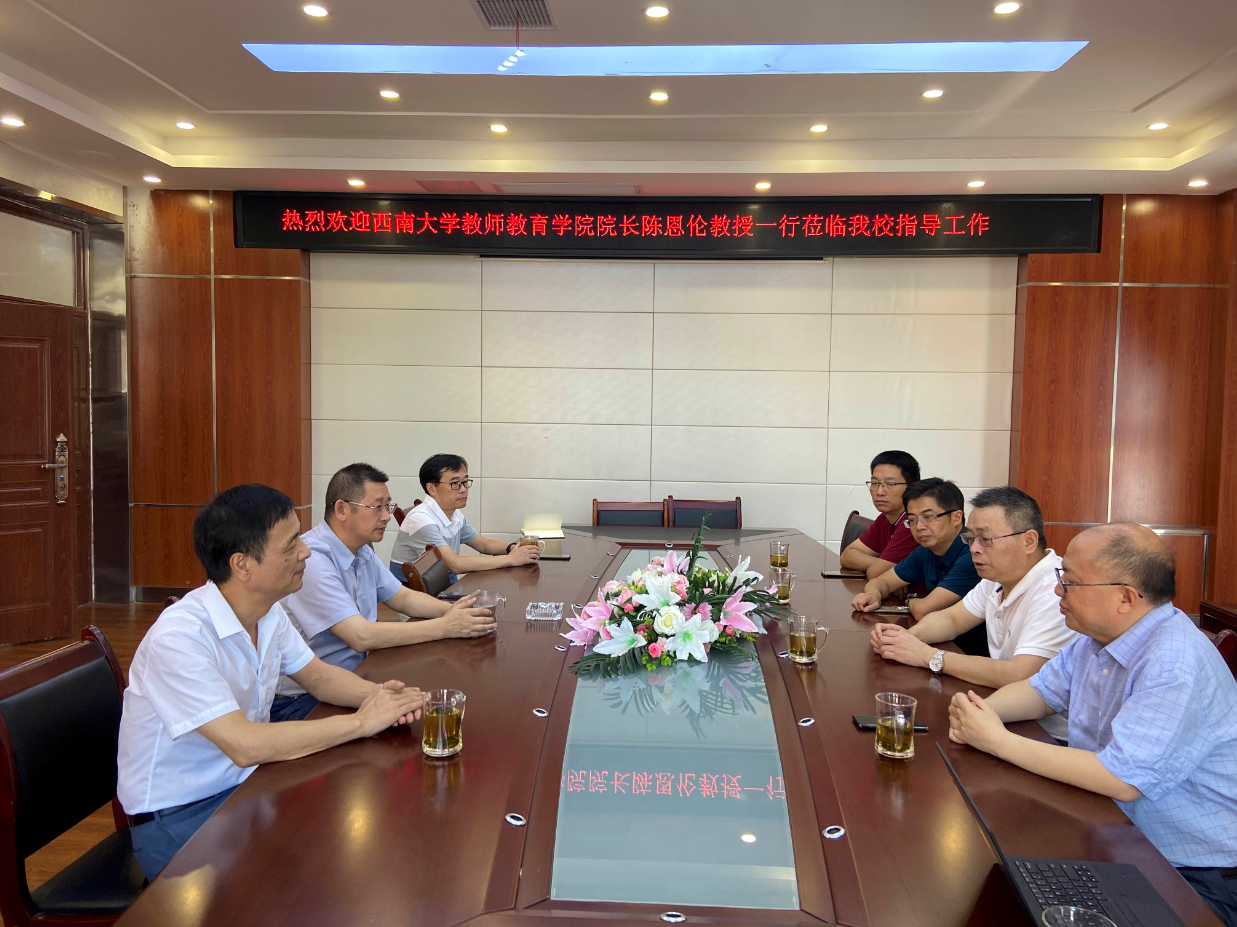 8月29日,我院陈恩伦院长、张学斌副书记、李世讴副院长以及教育实习办公室主任刘凤妮一行赴广安市友谊加德中学,就公费师范生教育实习基地建设以及教师职后培训等相关事宜进行实地考察调研。加德集团董事长伍小龙、友谊加德中学校长胡维良接待调研。