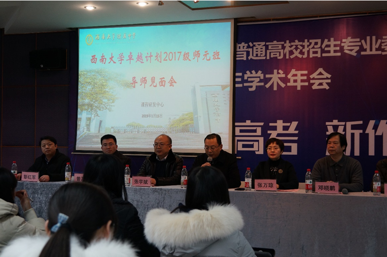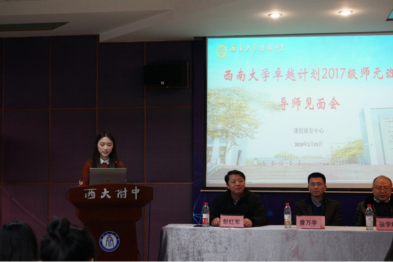 为贯彻落实教育部《关于实施卓越教师培养计划2.0的意见》文件精神,深入全方位育人的现代教育理念,助推我校卓越教师人才培养体系,进一步提升师元班学生个人专业成长和实践教学能力,2018年1月15日下午,师元班走进西大附中,参加76net必赢官网卓越教师培养计划2017级师元班暨首期师元硕士班实践导师和班主任导师见面会。
