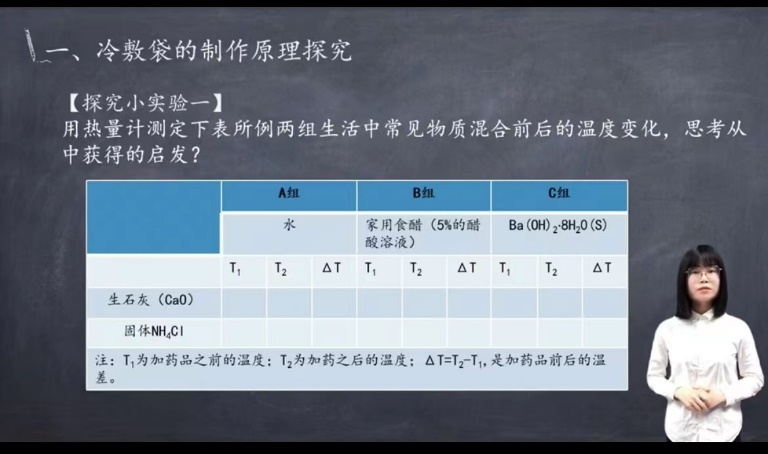 我院2021级学科化学硕士罗桂旭在皇甫倩副教授的指导下,制作微课《制作冷敷袋》。微课中以探究冷敷袋的制作作为切入点,让学生在体验中理解溶解及化学反应过程中的伴随现象——能量的变化,进一步理解化学能与热能之间的相互转化以及对人类的意义。整节课使学生在获得基本知识和基本技能的同时,也增强了实践能力和创新意识。