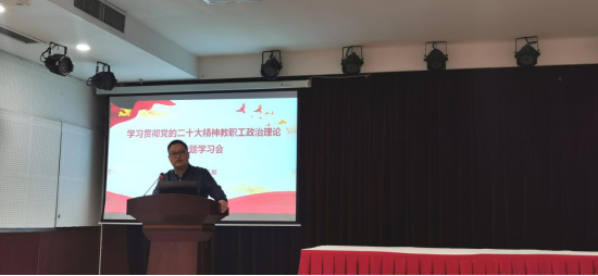 最后,学院党委郭亮书记对此次会议进行总结。郭亮书记表示学习好、宣传好、贯彻好党的二十大精神是当前和今后一段时期的首要政治任务,并结合学校和学院近期学习贯彻党的二十大精神的相关安排,提出以下几点意见:一是着力在学习宣传上取得新成效。学院将开展形式多样的学习宣传活动,各支部、各教研室也可以结合自身的特点,开展多种多样的学习宣传党的二十大精神活动。二是着力在推动事业发展上取得新成效。要把党的二十大精神作为最现实鲜活的教材,融入课堂教育、文化知识教育、社会实践教育各环节,融入教材讲义,融入大思政课建设,体现在学科体系、教学体系、教材体系、管理体系建设各方面,坚持落实立德树人根本任务,着力培养大量扎根基层、服务国家、党和人民满意的“四有”好老师,着力推动教师教育高质量发展,努力为新时代新征程上我国教育事业发展、尤其是为西部地区基础教育事业发展作出应有贡献。三是着力在年度工作上取得新成效。要集中精力办好自己的事情,紧盯我们学院的年度工作、全力冲刺提速,不折不扣完成全年既定目标任务。要坚持政治引领,突出内涵建设,以“十四五”规划落实为重点,以人才队伍建设为抓手,以“双一流”建设为契机,以服务国家重大战略为导向,持续推进学院党建与事业发展深度融合,全面提升办学能力与办学水平。四是着力在研究阐释上取得新成效。老师们要紧紧围绕党的二十大精神,积极申报各级各类项目,撰写一批理论文章,加强研究阐释,推动理论宣传普及。