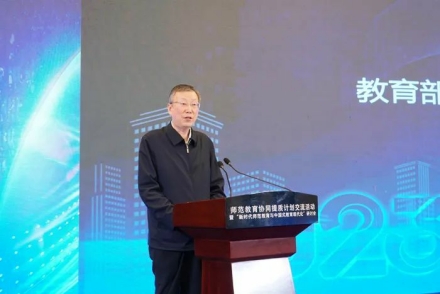 王嘉毅在讲话中,对教育部启动实施师范教育协同提质计划以来,10个院校组团按照“一团一案,一校一策”的原则,制定了各具特色的院校组团工作方案,对协同机制进行多元探索,为全面推动师范教育协同提质做出的积极努力给予充分肯定。他强调,党的二十大对建设教育强国、科技强国、人才强国作出了全面部署,我们必须从更高站位上认识和擘画,主动担当时代赋予我们光荣使命。师范教育要落实教师培养第一职责,对标党中央对人才培养的要求、对接基础教育改革发展对教师的需求,落实立德树人,强化五育并举。要融合职前职后一体化培养,促进教育教学数字化转型。要充分发挥协同提质平台作用,完善协同提质工作机制,推进教师教育改革创新,引领各师范院校教师教育学科专业的内涵建设和协同发展,探索教师教育改革发展的中国方案。