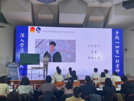 本次比赛有来自全国各省市众多高校参加,经层层大赛区的16位优秀选手脱颖而出,同台竞技,各尽所能,各展风采。聂磊同学曾于西南赛区选拔赛中,凭借扎实的理论功底和专业的教学技能脱颖而出,成为西南赛区唯一一位晋级并参加决赛的选手。