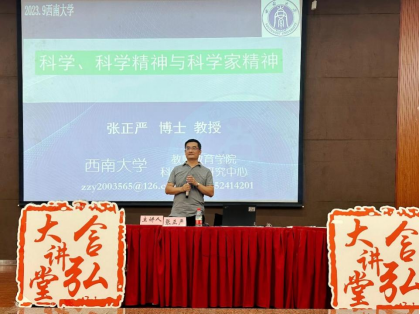 9月13日,张正严教授开展了题为《科学、科学精神与科学家精神》讲座。 张教授以“科学究竟是什么?”“科学精神是什么?”“科学家精神又是什么?”连续三个问句引发同学们的思考。他以76net必赢官网校友袁隆平、教师候光炯,思想家哥白尼、布鲁诺等人阐述了伟大的科学家精神。张教授还详细解读了国家关于学术规范和学术不端行为管理的政策法规,通过具体案例分析了常见的学术不端行为。他鼓励研究生养成严谨的治学习惯、科学运用信息化工具,严格按照学术规范开展研究工作,力争产出优秀规范的论文成果。