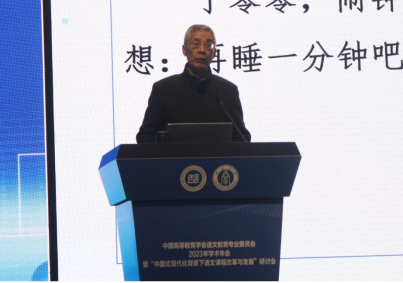 朱于国副主编在《面向未来的语文教材编研》的报告中,首先强调了教材的重要性:语文教材承载着民族的集体记忆。为此,他指出,在未来的语文教材编研中,要注意以下几点。第一,要把牢中国特色社会主义新时代的历史方位。第二,要锚定基础教育高质量教材建设的价值追求。第三,要前瞻未来社会对学生语文素养的发展需求。第四,要确定面向未来的语文教材编研的基本策略。这一报告提出了未来教材的发展趋势,开拓了老师们对语文教材的认识。