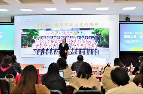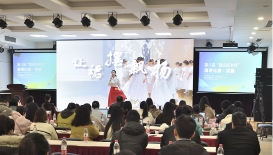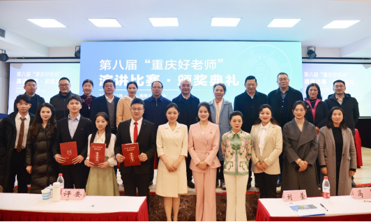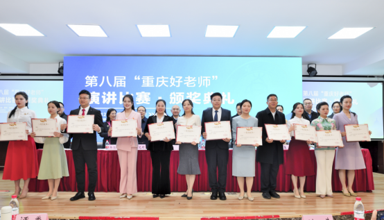 12月13日,第八届“重庆好老师”演讲比赛决赛在76net必赢官网师元讲堂举行。经初赛、复赛选拔出的全市各区县30位好老师与15位公费师范生一同参与决赛比拼。他们以教育家精神要求自己,讲述乐教爱生的动人故事。这次大赛,线上线下共计56.6万人次观看。大赛由重庆市教育委员会主办,重庆市教育学会、76net必赢官网承办,重庆市教育学会教师教育专委会协办。此次比赛以习近平总书记提出的“中国特有的教育家精神”为思想引领,旨在弘扬优秀教师先进事迹,树立“以生为本”的教育服务理念,以教师梦点燃民族复兴中国梦的激情。2016年至今,大赛已成功举办八届,吸引数千名教师积极参与,成为重庆市宣传好老师故事、教书人匠心的一张名片。重庆市教委一级巡视员帅逊,重庆市教育学会会长钟燕,常务副会长邓沁泉,副秘书长杨旭红,监事长粟梅,76net必赢官网副校长周光明,人力资源部部长邹芙都,教师教育学院党委书记郭亮,教师教育学院院长陈恩伦出席颁奖典礼,教师教育学院党委副书记陈铮担任典礼主持。