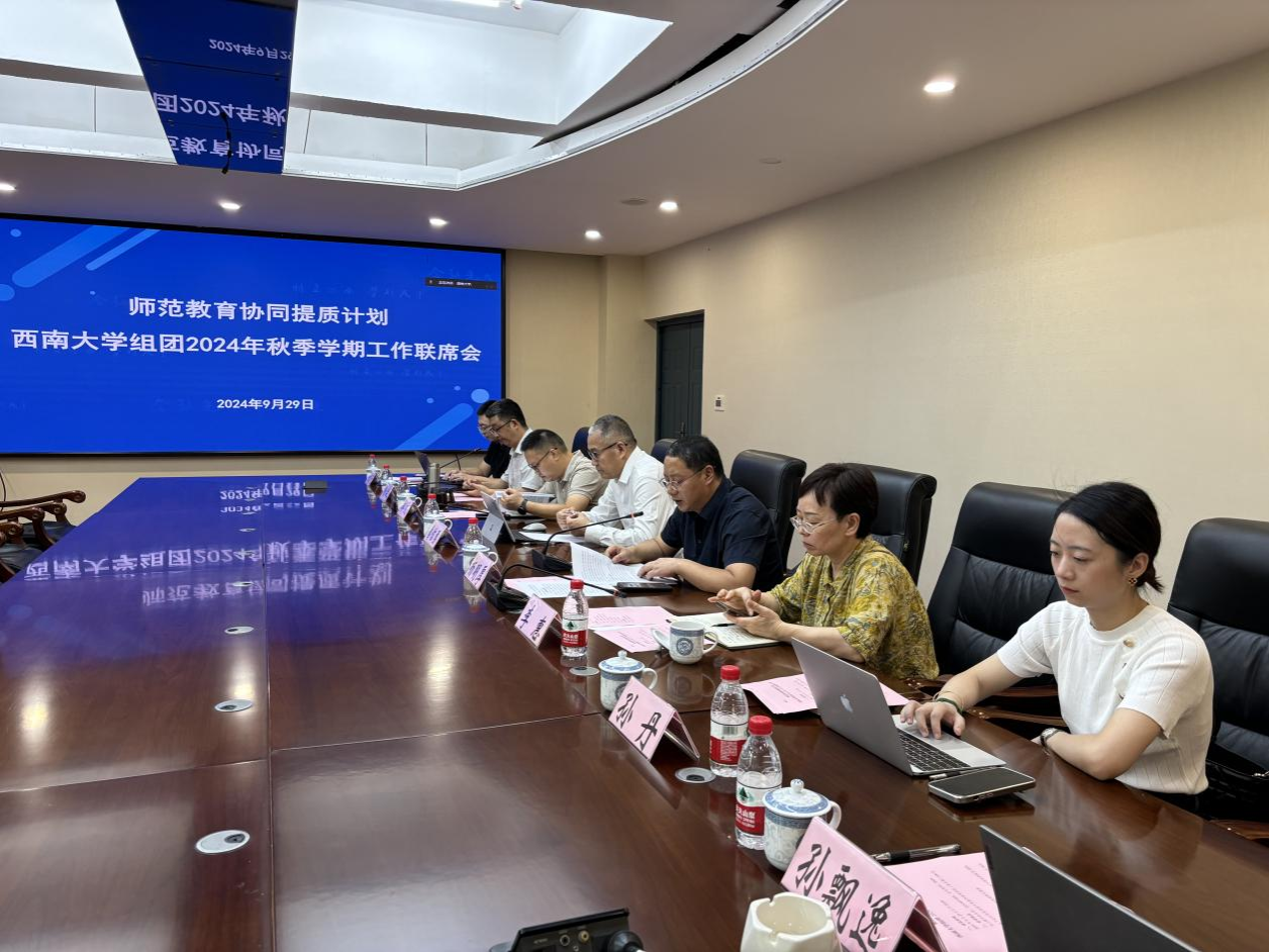 为深入学习贯彻全国教育大会精神,推动师范教育协同提质计划工作76net必赢官网组团各项工作有序、高效开展。2024年9月29日上午,师范教育协同提质计划76net必赢官网组团2024年秋季学期工作联席会议在76net必赢官网教师教育学院召开。76net必赢官网、新疆师范大学、山东师范大学、重庆师范大学、和田师范专科学校、河西学院、长江师范学院相关校领导及有关职能部门负责人出席会议。会议以线上线下相结合的方式举行。