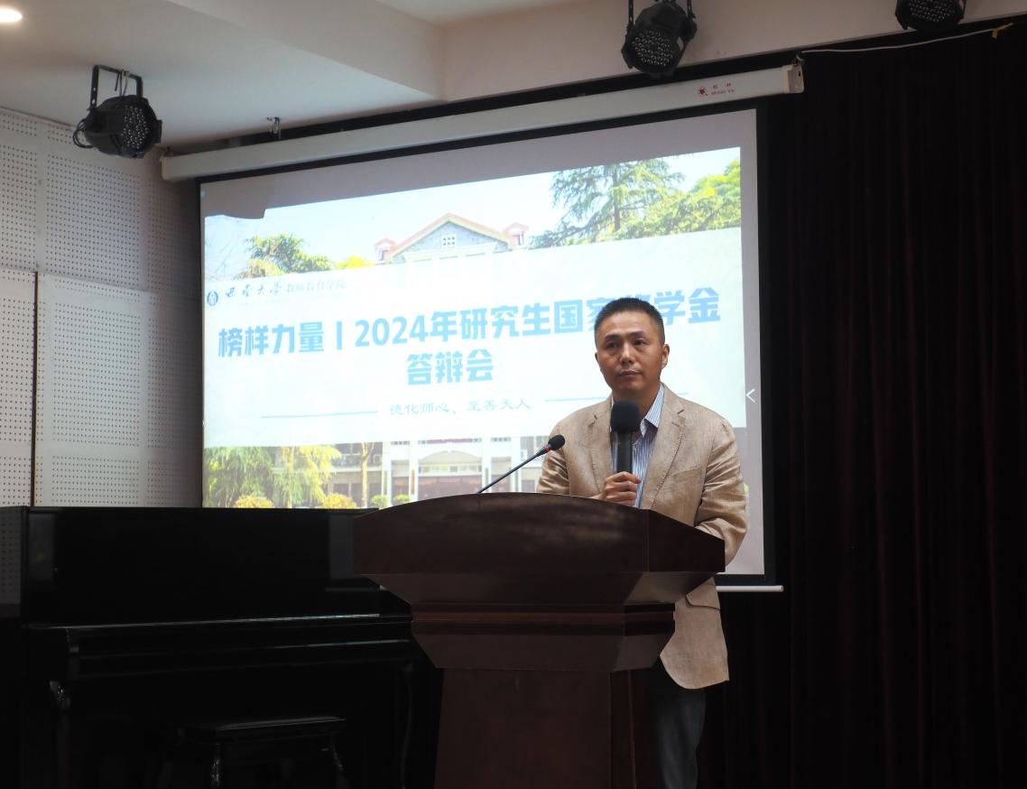 为切实做好国家奖学金的评审工作,充分发挥优秀学生的示范引领作用,学院于10月11日下午在师元讲堂举行2024年研究生国家奖学金答辩会。院长罗生全、党委副书记陈铮出席答辩会,各中心教师代表担任评委,100余名学生代表参加。