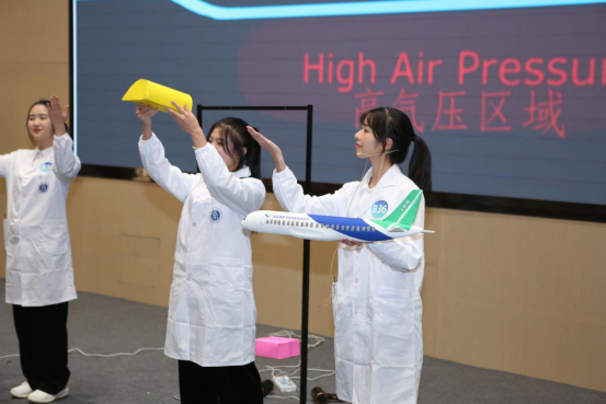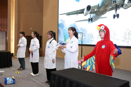 该作品以独特的仿生学视角和精彩的剧情演绎,生动展现了一场飞行奥秘的探索之旅。故事始于同学们对航空飞行关键要素的激烈争论,神秘快递带来国产大飞机C919模型,引发众人惊叹。随着场景突变,师生竟穿越至奇幻森林,需要完成特殊挑战——探究飞机飞行奥秘以换取C919模型缺失的机翼。在鸟儿引导下开启探索之旅。同学们从鸟儿飞行的关键——翅膀入手,展开深入研究。通过对比流线型和非流线型物体在风力下的升力效果,运用伯努利原理,成功揭示飞机获得升力的奥秘,赢得第一片机翼。随后,在鸟儿的启发下,师生共同探究了飞羽排列对升力的影响,经过实验发现部分重叠排列的羽毛更有利于飞行,从实验现象推测出鸟类羽毛排列方式在灵活调节气流、利用升力上的作用,获得第二片机翼,成功组装完整飞机模型并穿越回到现实。