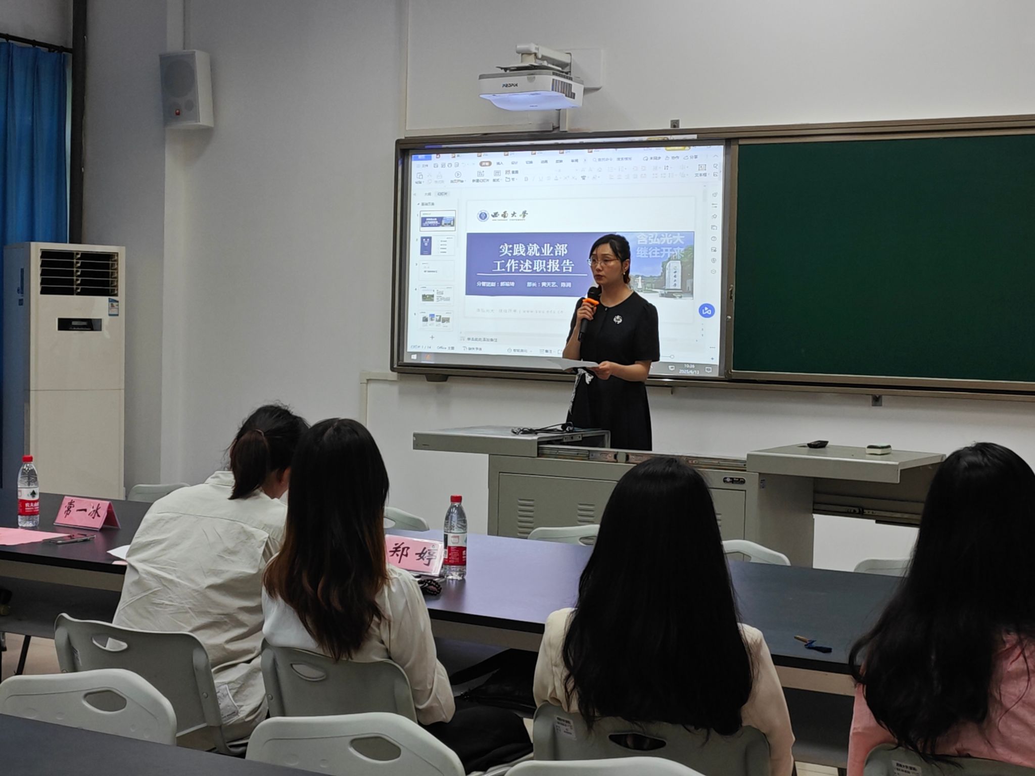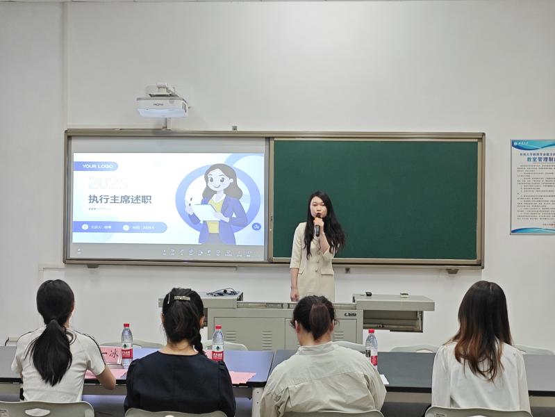 会议伊始,第五届研究生会主席团成员及各部门负责人依次登台述职。他们全面回顾任职期间的工作,从成果展示到经验分享,再到反思总结,生动呈现了研会过去一年在服务师生、助力学术与文化活动开展等方面的积极贡献。