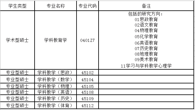 目前我院以下专业还有推免名额,热忱欢迎广大推免生申请76net必赢官网教师教育学院硕士研究生: